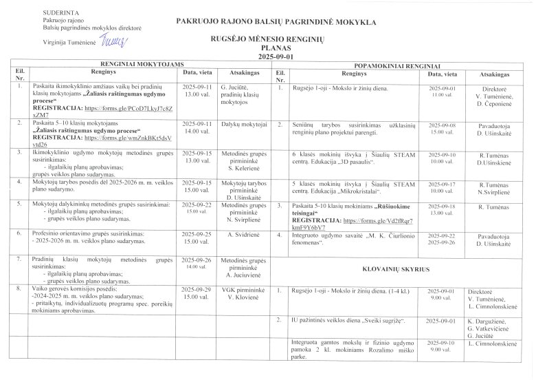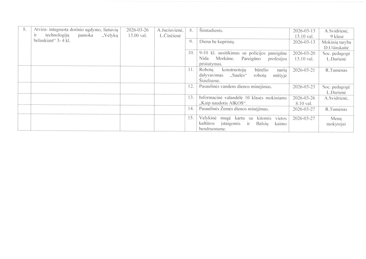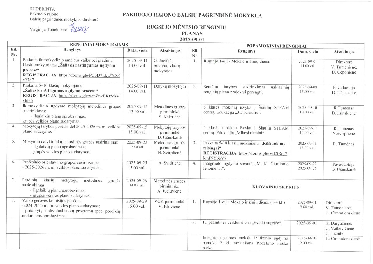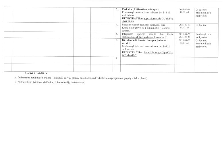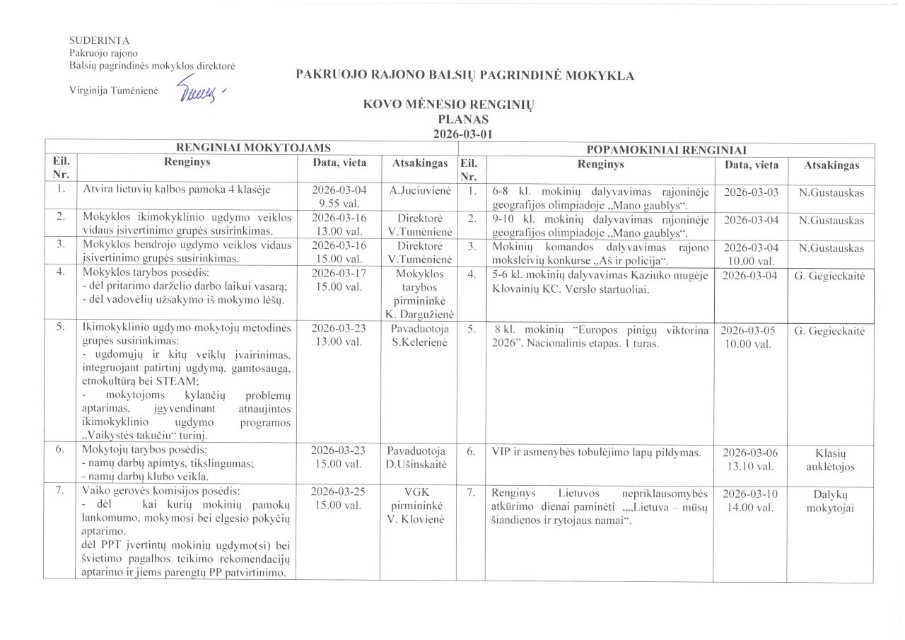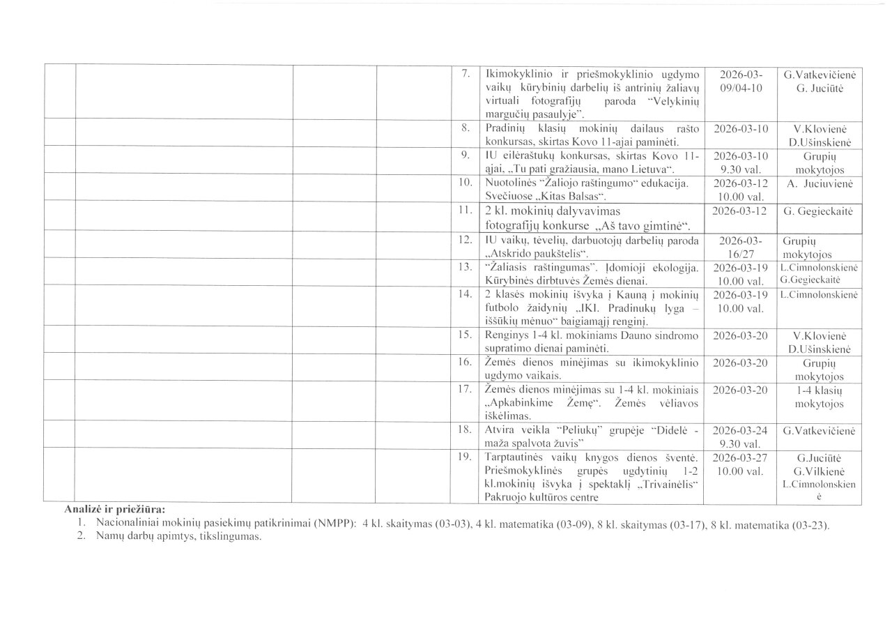 Mėnesio veiklos planas