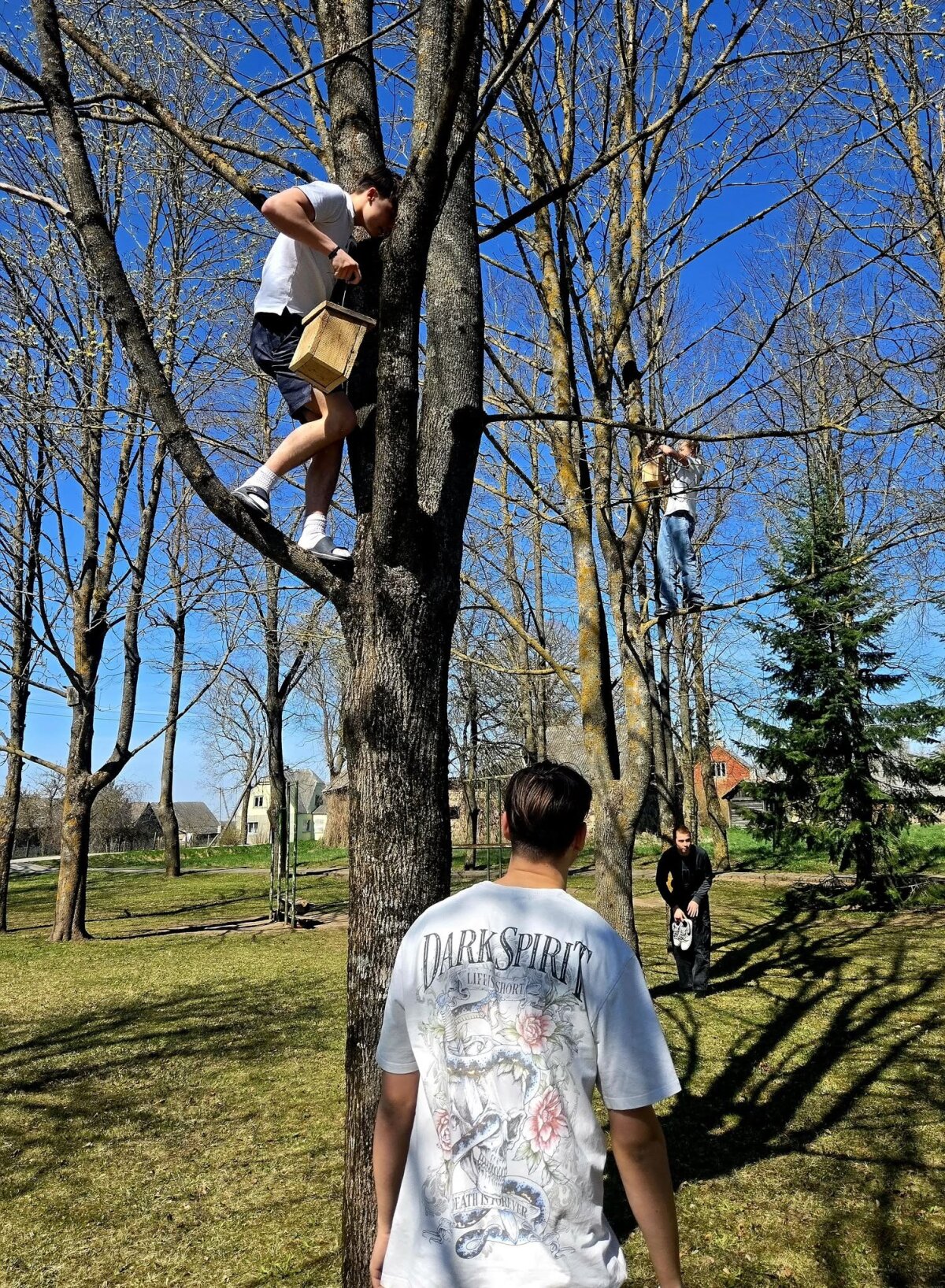 Visi džiaugiamės šiltėjančiu oru, pavasario kvapais ir linksmai čiulbančiais paukšteliais. Norėdami, kad mažieji sparnuočiai mus džiugintų dar labiau, mūsų dešimtokai parkelyje prie mokyklos iškėlė jiems jaukius namelius. Tikime, kad inkilai netrukus prisipildys gyvybės ir pavasariškų melodijų.