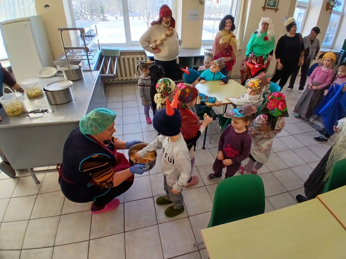 UŽGAVĖNĖS – linksma žiemos išvarymo šventė! Vaikai tą dieną dedasi kaukes , skamba juokas , triukšmas ir visi kviečia pavasarį ateiti greičiau . Arenoje susitinka Kanapinis ir Lašininis – jie juokingai grumiasi, kol galiausiai laimi pavasaris! Ant stalų kvepia blynai – apvalūs kaip saulė ir labai skanūs! Užgavėnės – tai diena, kai leidžiama juoktis, žaisti, pokštauti ir šaukti: „Žiema, žiema, bėk iš kiemo!“ Vaikai ir auklėtojos pasipuošė užgavėnių kaukėmis ir linksmai dainavo bei šoko, taip stengdamiesi išvyti šią atšiaurią žiemą Bendromis jėgomis sudeginome Morę ir keliavome vaišintis šiltais ir gardžiais blynais, kuriais pasirūpino mūsų gerosios virėjos.