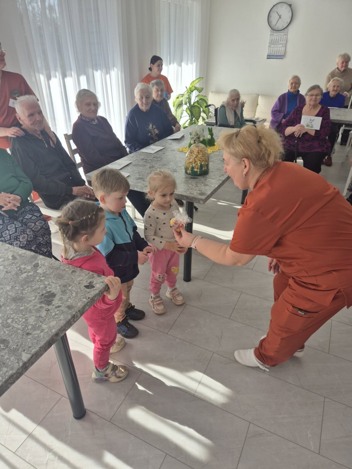 Velykiniai vaikučių sveikinimai Žvirblonių senjorų namų seneliams