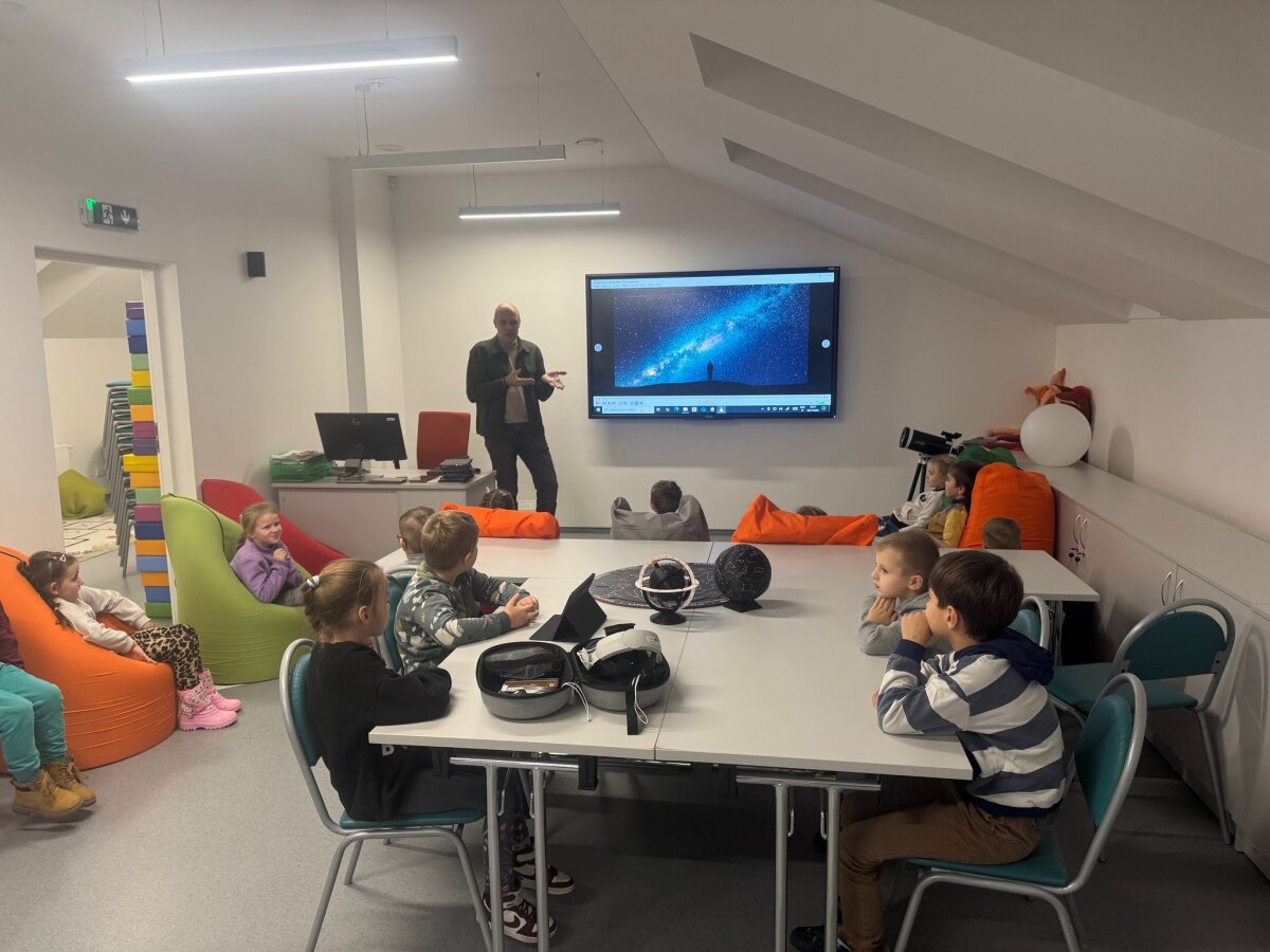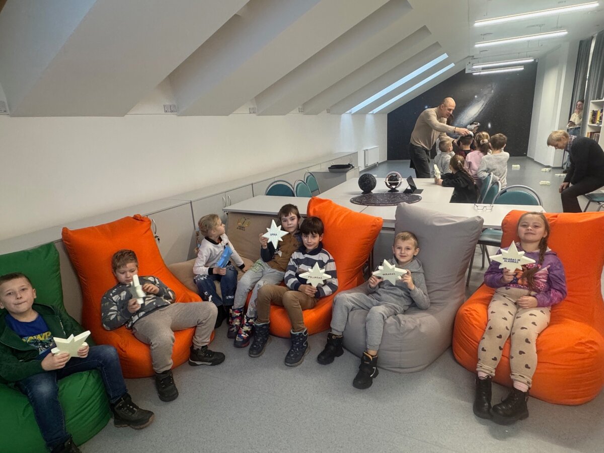 Lapkričio 25 dieną 1 klasės mokiniai vyko į Pasvalį, kur aplankė Pasvalio krašto muziejų bei viešąją M. Katiliškio biblioteką. Muziejuje pirmokai dalyvavo edukacijoje „Dangaus abėcėlė“. Čia jie sužinojo, kiek paslapčių, mitų ir atradimų slepia nakties skliautas, išbandė interaktyvias priemones ir patys pasijuto tikrais kosmoso tyrinėtojais. Užsidėję specialius akinius vaikai „gaudė“ žvaigždes, o vėliau apie jas plačiau papasakojo edukaciją vedęs darbuotojas. Kelionė suteikė daug įspūdžių ir džiaugsmo – mokiniai ne tik praplėtė žinias apie kosmosą, bet ir patyrė, kaip smagu mokytis žaidžiant bei atrandant. Bibliotekoje vaikai susipažino su knygų pasaulio lobynais, išgirdo pasakojimų apie rašytoją M. Katiliškį ir sužinojo, kokių įdomių veiklų galima rasti šioje erdvėje. Išvyka pirmokėliams paliko neišdildomą įspūdį – jie grįžo kupini naujų žinių, patirčių ir smalsumo toliau tyrinėti pasaulį.