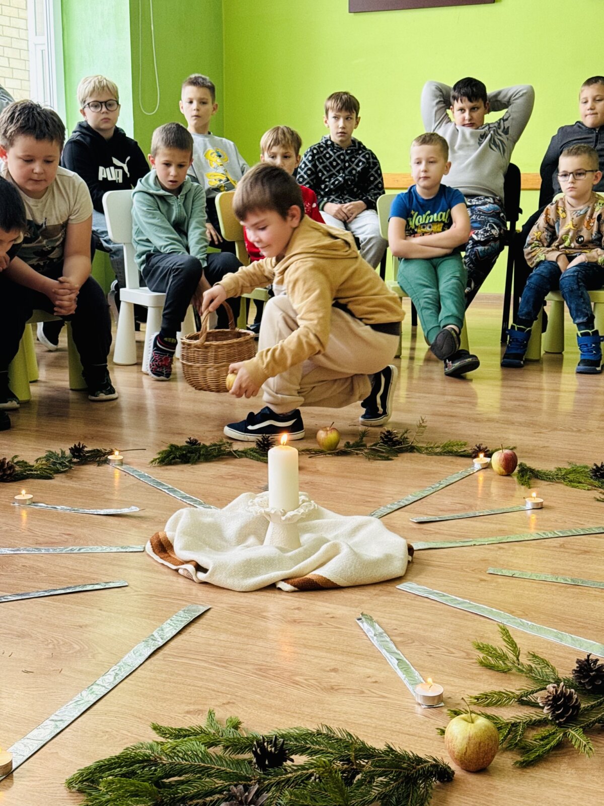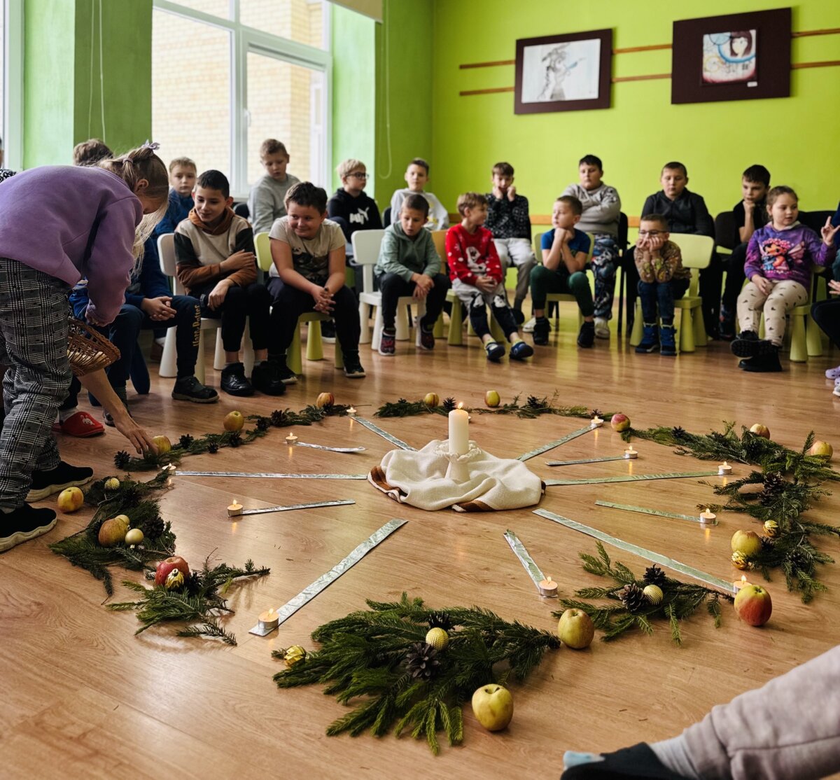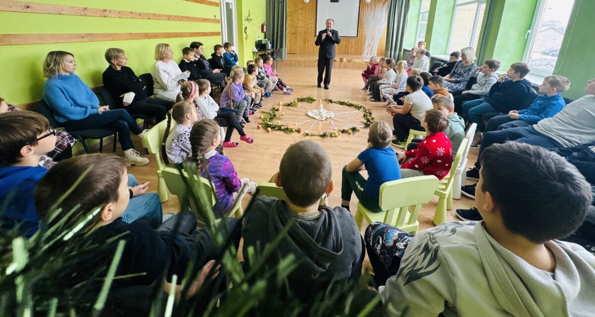 Prasidedant Adventui mokyklą aplankė Klovainių Švč. Trejybės bažnyčios klebonas R. Katilius. Klebonas kalbėjo apie trumpiausių dienų ir ilgiausių naktų laikotarpį, gerumo bei šviesos reikšmę. Paskatino ruoštis Kalėdų laukimui, šviesos atėjimui ir savyje bei kituose uždegti šviesos žiburį- šiluma ir meile atverti žmonių širdis, daryti gerus darbus. Tikybos mokytoja L. Činčienė su mokiniais pynė Advento vainiką. Visi kartu įprasmino kiekvieną svarbų žingsnį ir momentą: linkėjo sveikatos, ramybės, draugiškumo, dėkingumo, tikėjimo ir vilties, kad kiekvienuose namuose būtų šviesa ir džiaugsmas. Kvietė atjausti kitus, dalintis, kurti ramybę aplink save, branginti šviesą ir dėkoti. Dvasininkas džiaugėsi šiltu susitikimu, spindinčiomis vaikų akytėmis, bendruomeniškumu, tikėjimo įprasminimu ir aktyvia mokyklos bendruomene bei linkėjo, kad kiekvieną saugotų angelas.