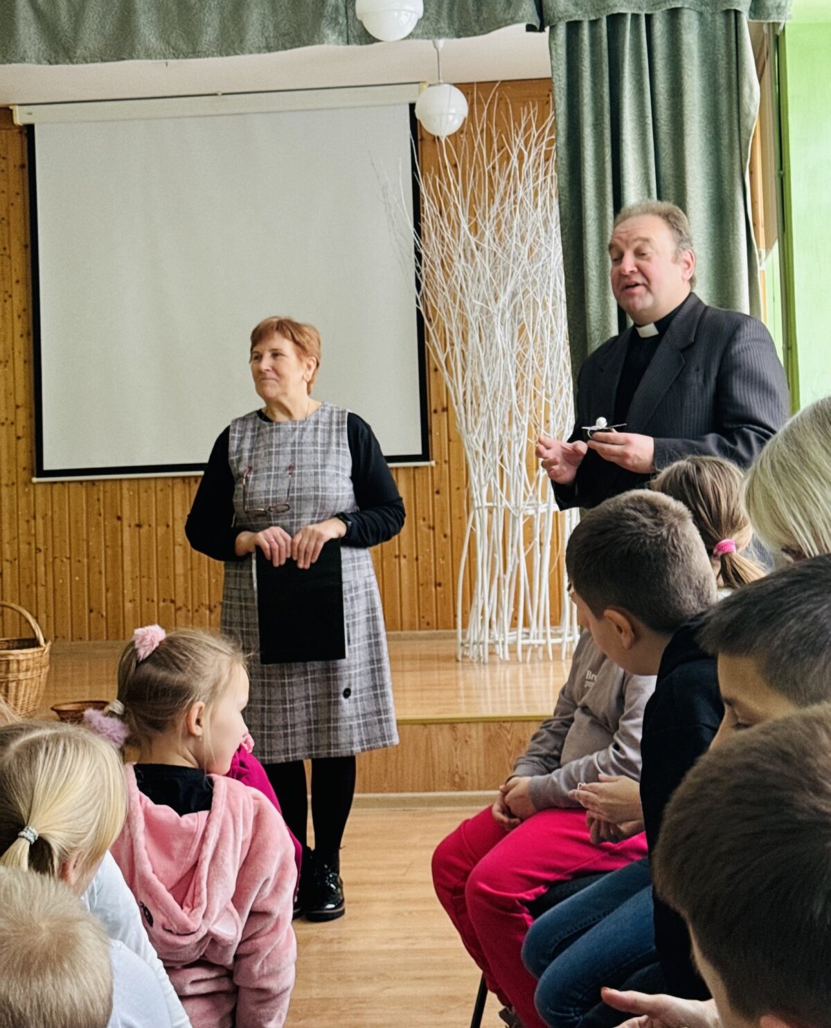 Prasidedant Adventui mokyklą aplankė Klovainių Švč. Trejybės bažnyčios klebonas R. Katilius