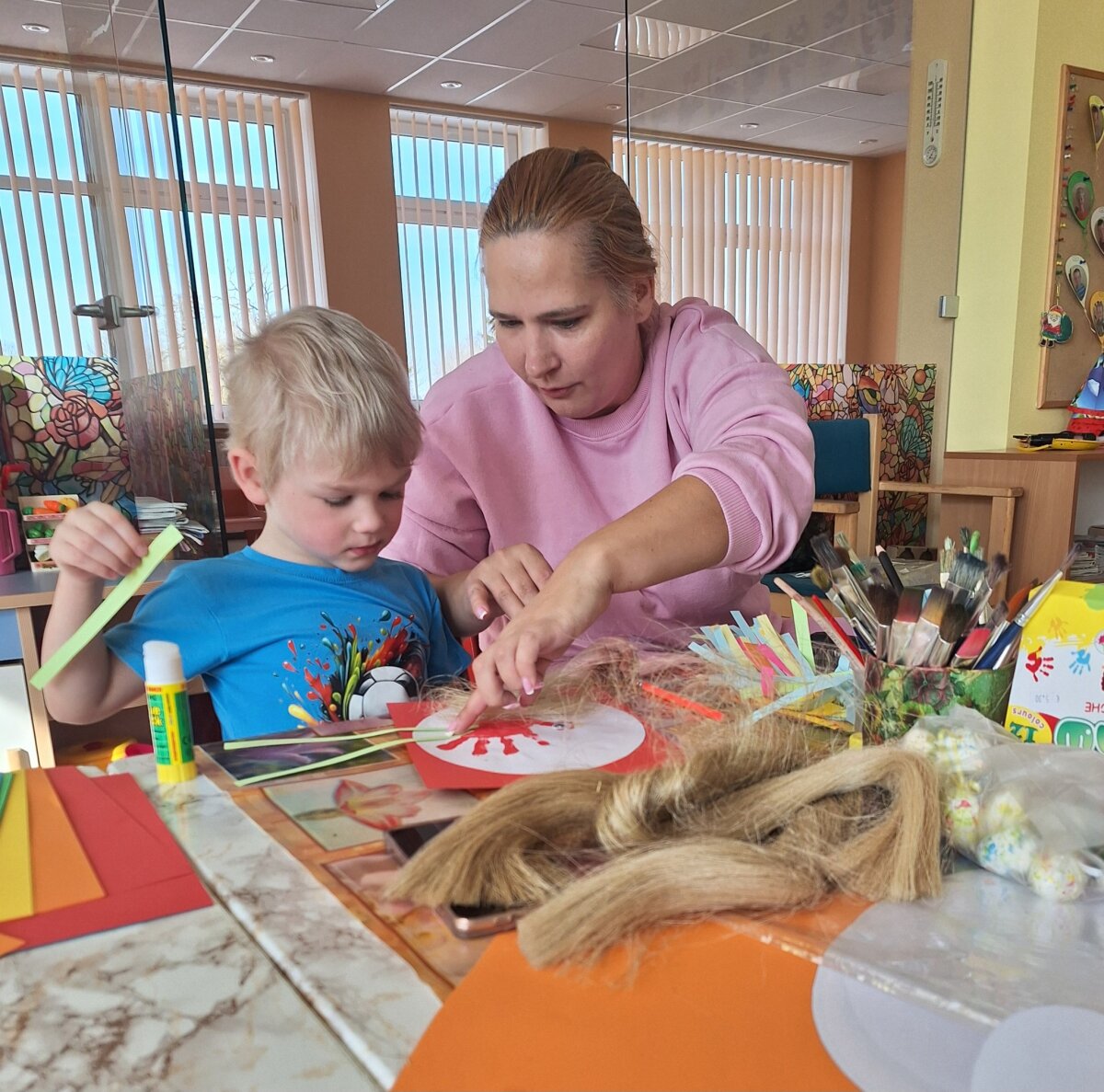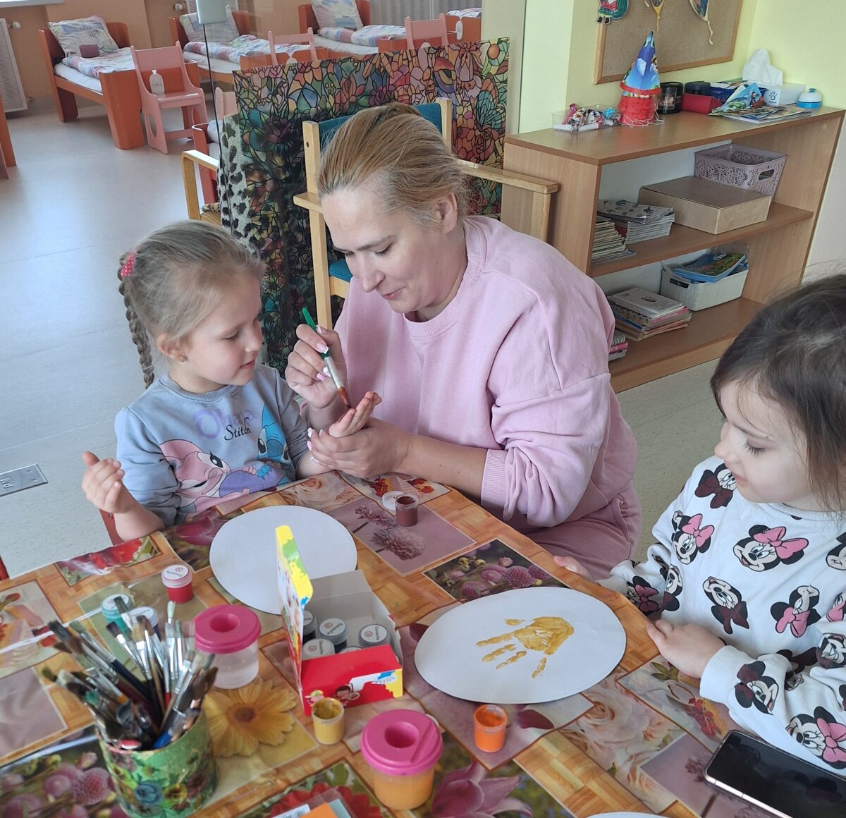 Šiandien ,,Kiškiukų'' grupėje svečiavosi Dijos mama Sigita. Ji vaikams pravedė kūrybinę edukaciją ir padėjo sukurti gražų velykinį darbelį - ,,Viščiukas lizdelyje''. Veiklos metu vaikai darė savo rankytės atspaudus, klijavo įvairias spalvingas detales, puošė savo darbelius pavasariniais motyvais. Kiekvienas galėjo parodyti savo kūrybiškumą, o rezultatai buvo labai įvairūs ir gražūs. Vaikiai smagiai leido laiką galėdami dirbti kartu, džiaugėsi vienas kito sukurtu darbeliu. Nuoširdžiai dėkojame mamai Sigitai už skirtą laiką ir šiltą bendravimą su vaikais.