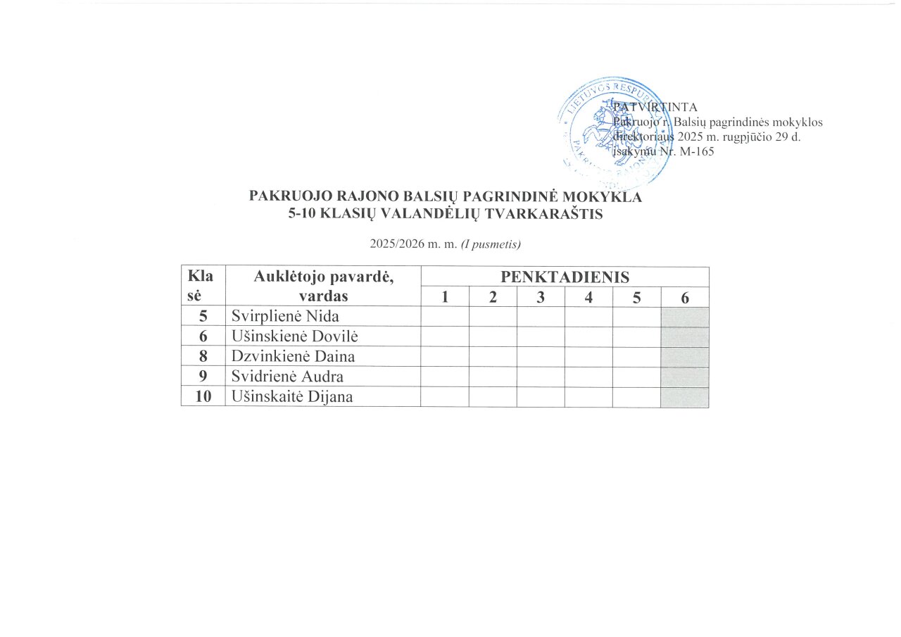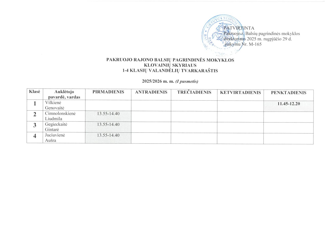 Klasių valandėlių tvarkaraštis 2025-2026 m.m.